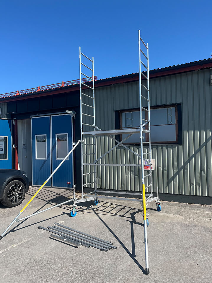 Lätthanterlig rullställning med en arbetshöjd på 5 meter.